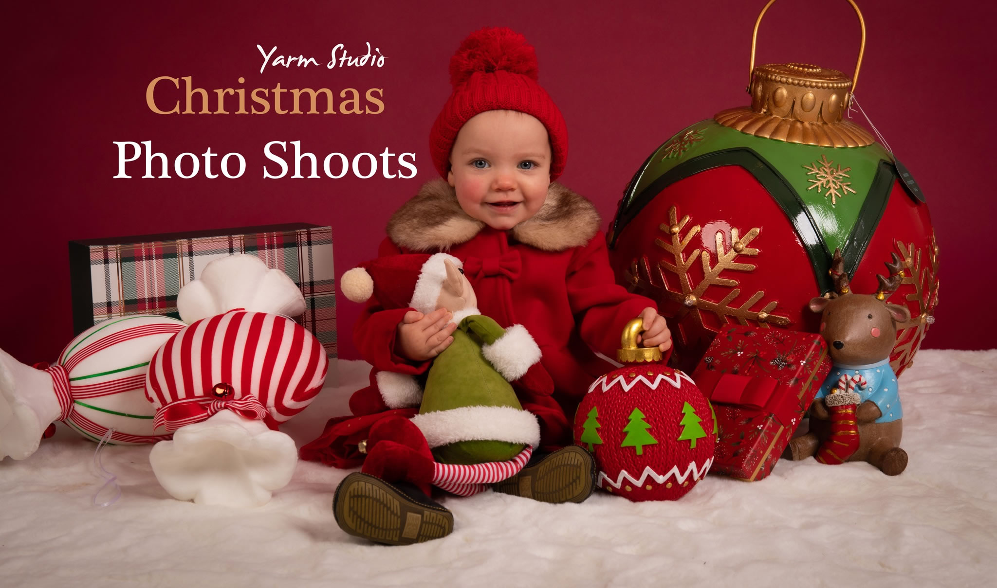 All through November & December, families are invited to join us in the studio for festive portraits filled with Christmas magic — think twinkling backdrops, Christmas music, mince pies, hot chocolate with marshmallows and plenty of festive fun.